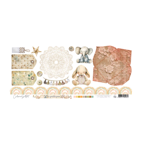 As cores da coleção foram cuidadosamente escolhidas, combinando tons pastéis e terrosos com uma pitada de azul e rosa bebê. A coleção inclui uma variedade de cards e apliques perfeitos para deixar seu álbum de bebê completo e encantador.