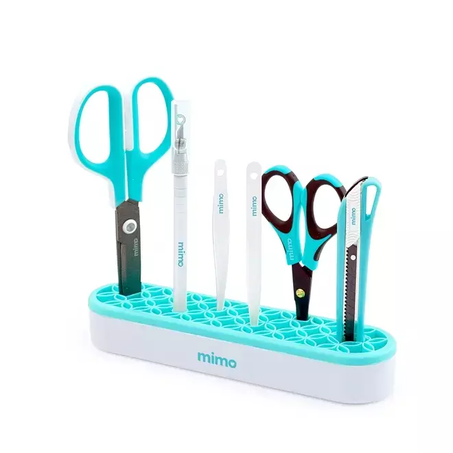 O Organizador de Mesa para Ferramentas Mimo serve para te ajudar a manter sua mesa de trabalho sempre organizada e suas ferramentas favoritas ao seu alcance. Ele é compatível com uma ampla variedade de tamanhos de ferramentas, não apenas ferramentas de artesanato, como tesouras, estiletes, vincadores, dobradores, boleadores, pinças e canetas, mas também pincéis de maquiagem, garantindo que tudo esteja sempre à mão durante seu trabalho.