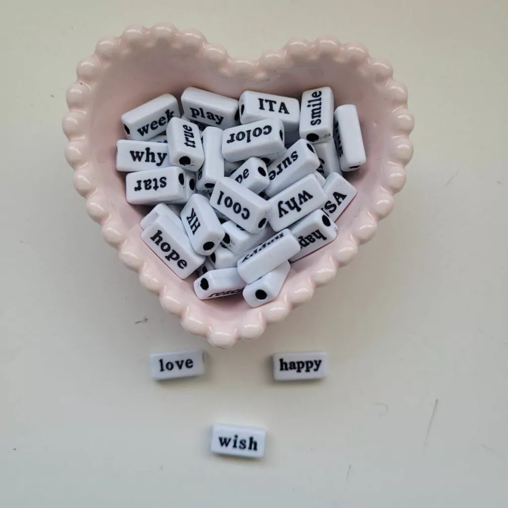 Potinho de miçangas de palavras